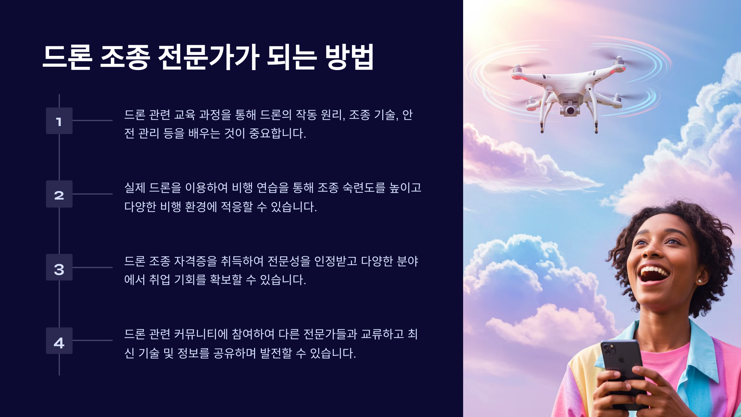 이러한 사례들을 보면 드론이 얼마나 유용한 도구인지 알 수 있어요. 그렇다면, 드론 조종 전문가가 되려면 어떻게 해야 할까요? 🎓