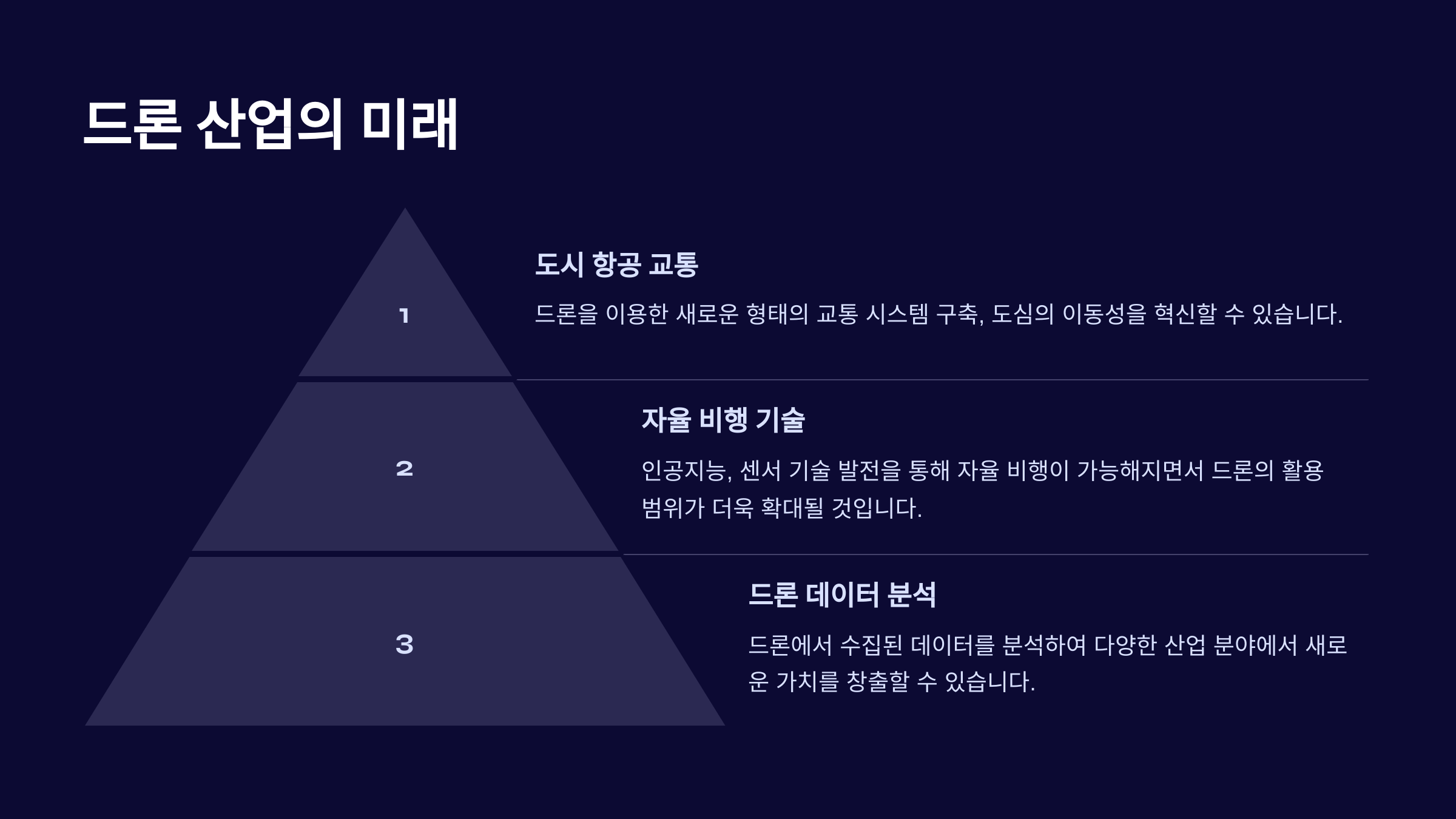 - 스마트 물류 혁신: 드론 배송이 일반화되면서 신속하고 친환경적인 물류 시스템이 구축될 거예요.