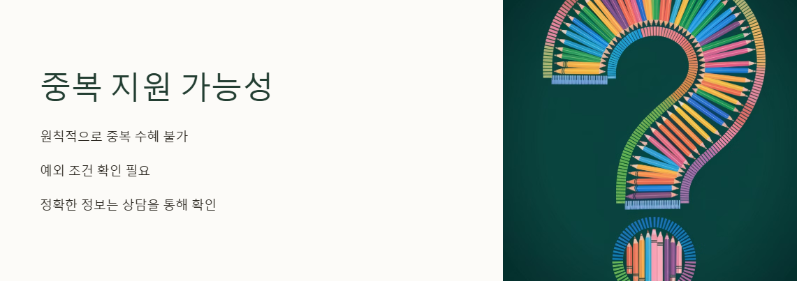 일부 지원 항목은 중복이 불가능하며, 신청 과정에서 실수하면 지원 대상에서 제외될 수도 있어요.